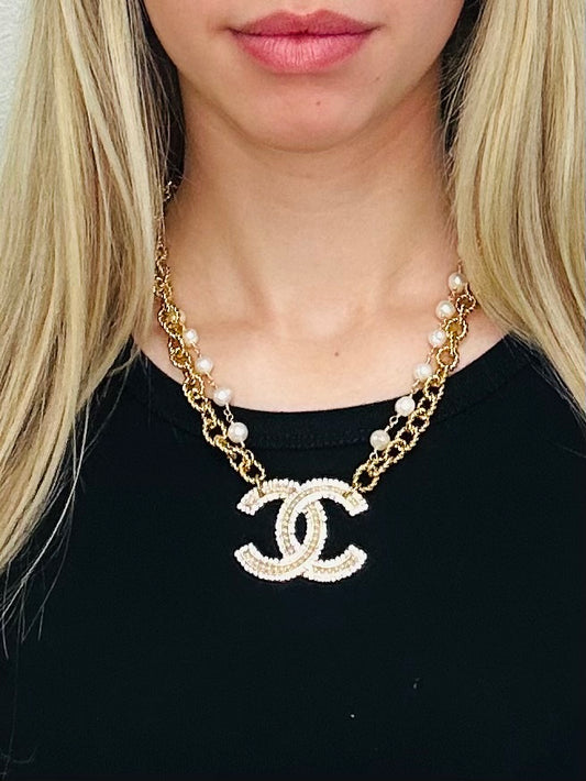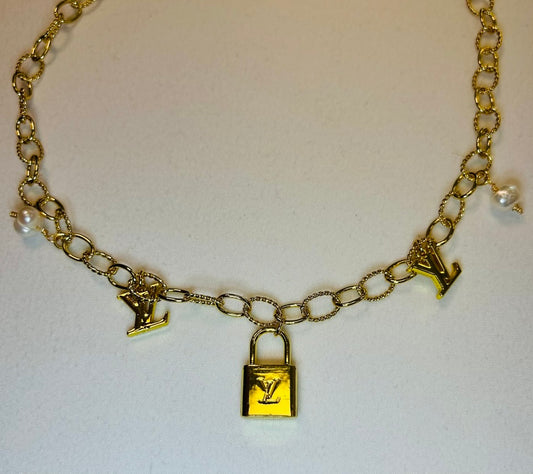 023- Authentic LV Gold Plated and Pearl Charm Necklace