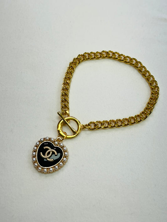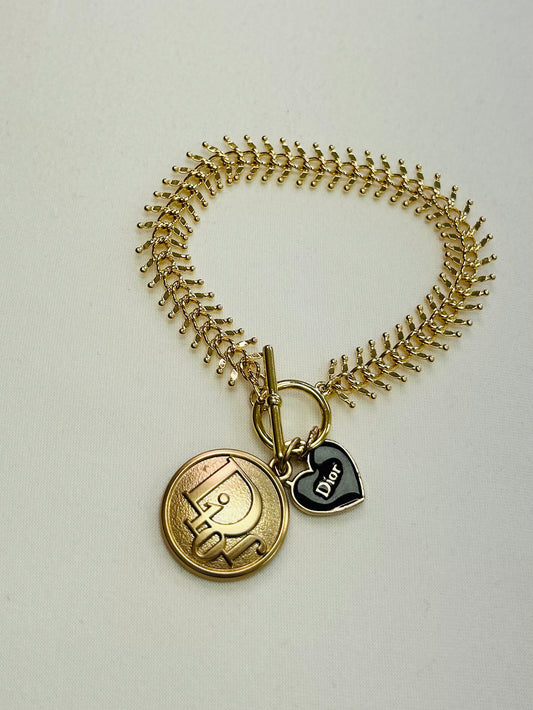 019- Authentic Dior Double Gold and Black Charm Bracelet