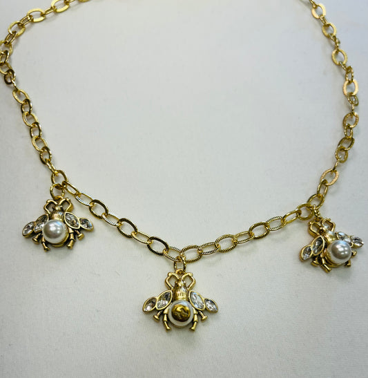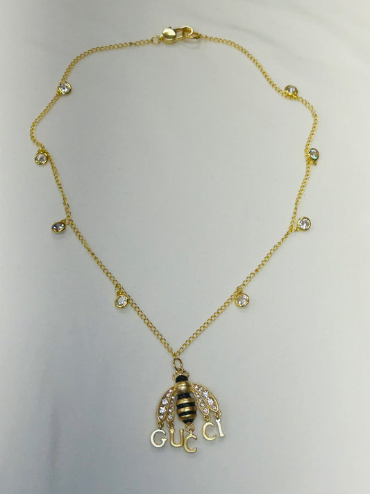 021- Authentic GG Gold and Crystal Triple Bee Necklace