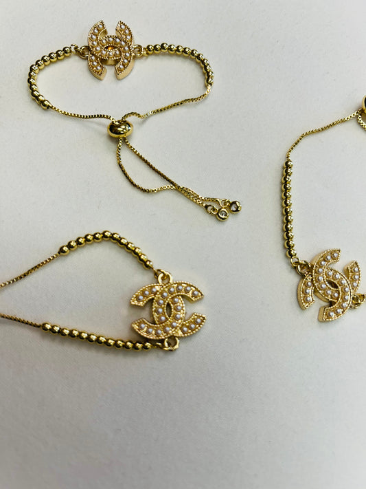 024- Authentic Dior Double Gold and White Charm Bracelet