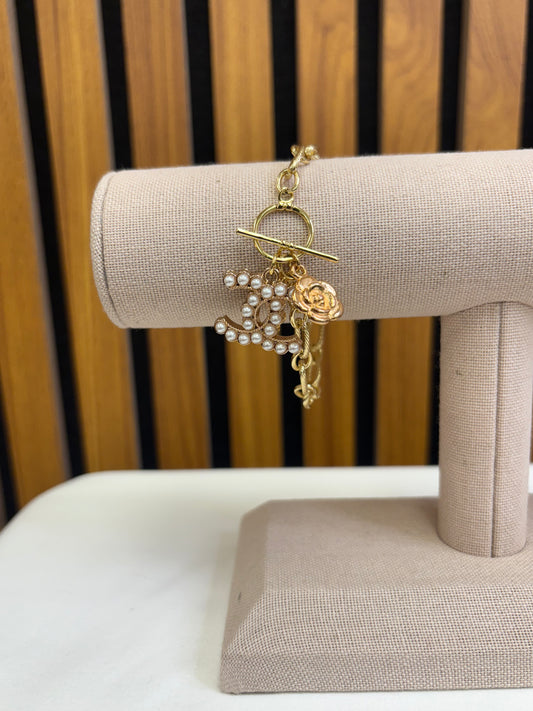 033- Authentic CC Pearl + Camilia Charm Bracelet