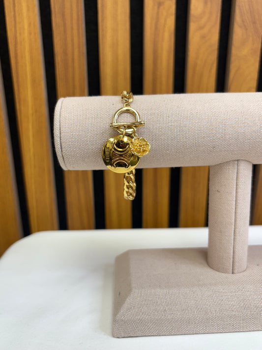 028-Authentic LV Charm Gold-Filled Bracelet