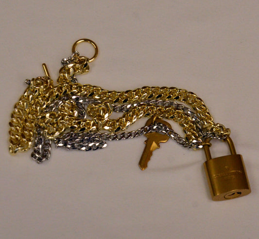 026 Authentic LV Lock Double Strand Gold Filled and Sterling Silver Necklace