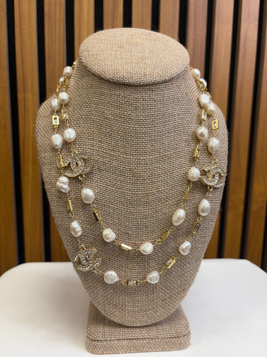 030- Authentic CC Long Freshwater Pearl and Gold-Filled Necklace